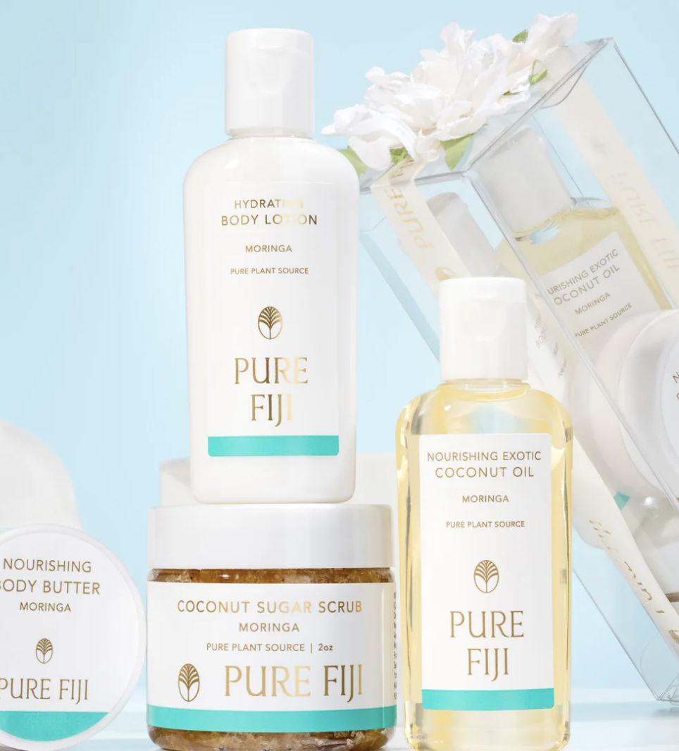 Transform your beauty routine into a pampering ritual with this adorable spa in a box. Enjoy a couple of hours peace, turn off your cellphone, turn on the shower and let all your troubles wash away starting with an exfoliating sugar rub, rinse, and then lock in a moisturizing treatment with our exotic body oil. Dry off with a warm towel, slather on Pure Fiji’s body butter or hydrating lotion, breathe and celebrate a new you! Includes a 2 oz. exfoliating scrub, 1 oz. exotic bath and body oil, ½ oz. body butter and 1 oz. hydrating body lotion.