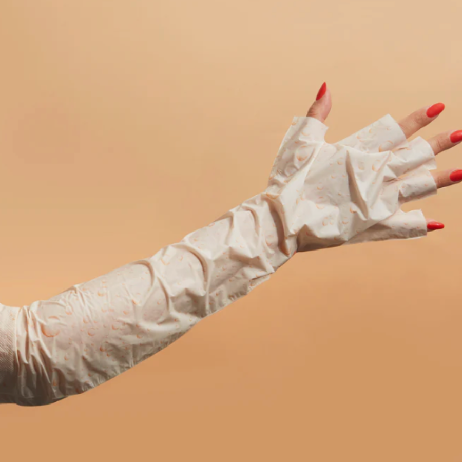 Hand care is self-care, too! Slip your hands and arms into instant hydration. Our vegan collagen long gloves are enriched with shea butter and niacinamide to effectively moisturize, brighten, and revive dry skin from your hands up to your elbows. These elbow-high gloves intensely nourish skin leaving it visibly softer, smoother, and more youthful in 15 minutes or less! No more rough hands or flaky, embarrassing elbows. (Individual glove)